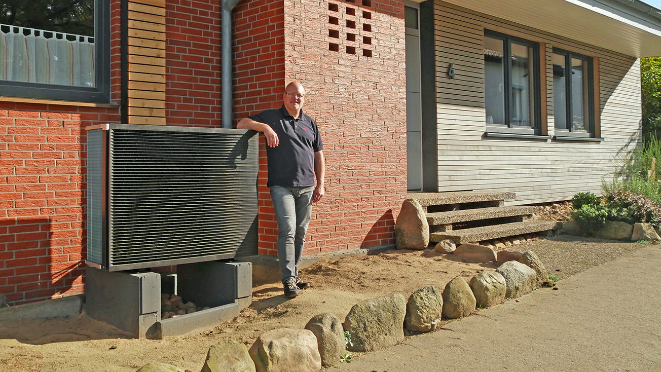 Den kompakte enhed med et beskedent grundareal (59,5 x 62,5 cm) og en kun 1,65 m høj indendørsenhed var et vigtigt kriterium for valget af DAIKIN Altherma 3 H HT varmepumpen. Varmeanlægget hos ægteparret Weinmann befinder sig nemlig ikke som normalt i kælderen, men oppe under taget. Indendørsenheden skal derfor transporteres gennem et smalt trapperum. "Vores trappe er kun 85 cm bred på det smalleste sted, og derfor valgte vi denne kompakte variant, som kan passere gennem vores smalle trapperum", siger Volker Weinmann. En yderligere fordel ved DAIKIN Altherma 3 H HT varmepumpen er den meget støjsvage udendørsenhed - kun 35 dB(A) (i tre meters afstand). Det svarer omtrent til støjniveauet på et bibliotek, hvor folk kun må hviske. Det betyder, at naboerne ikke bliver forstyrret, og at varmepumpen også er velegnet til mindre grunde og tætbebyggede boligområder.
